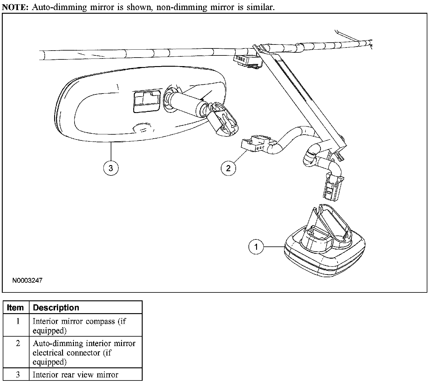 5. If equipped, connect the auto-dimming interior rear view mirror electrical connector.