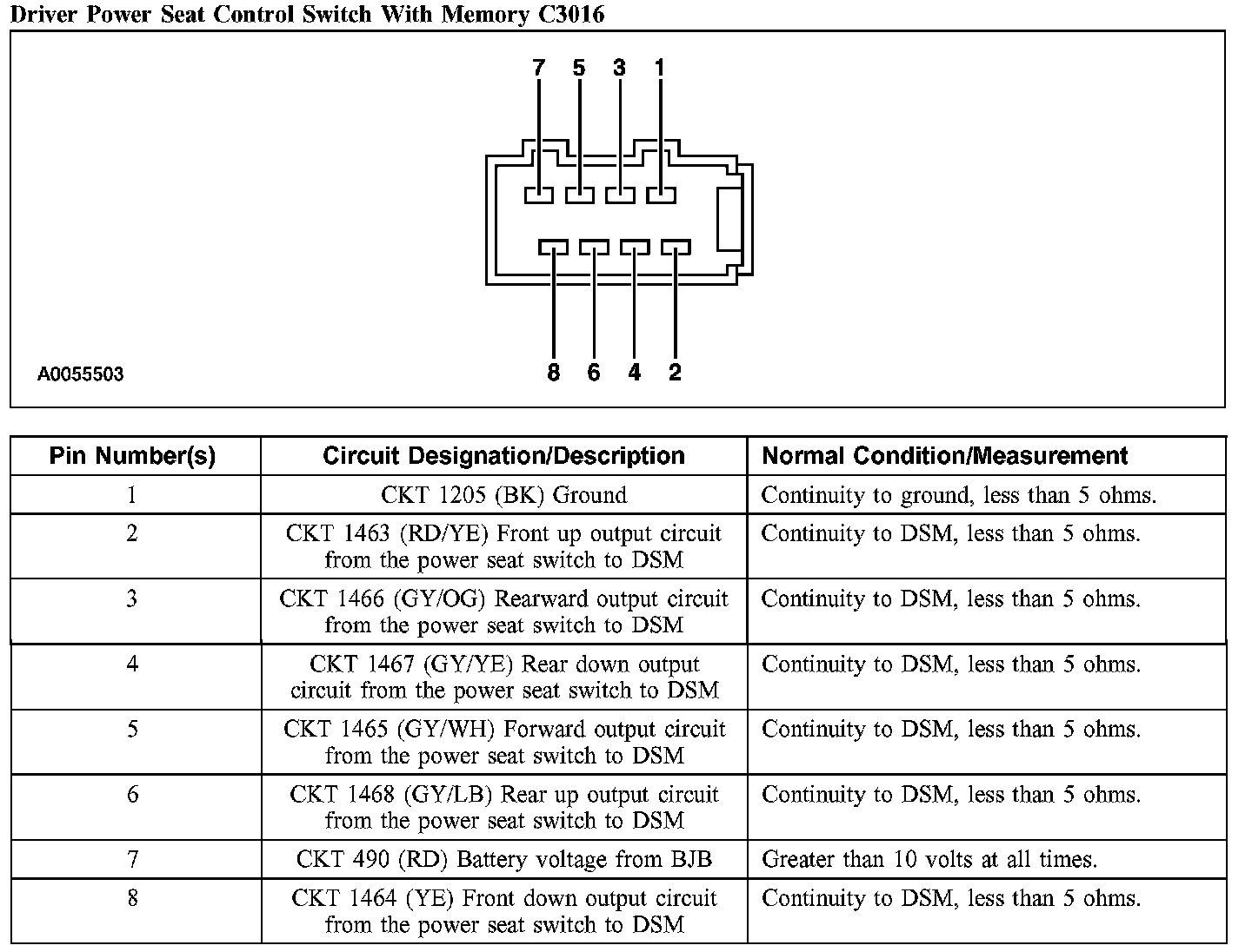 Driver Power Seat Control Switch With Memory C3016: