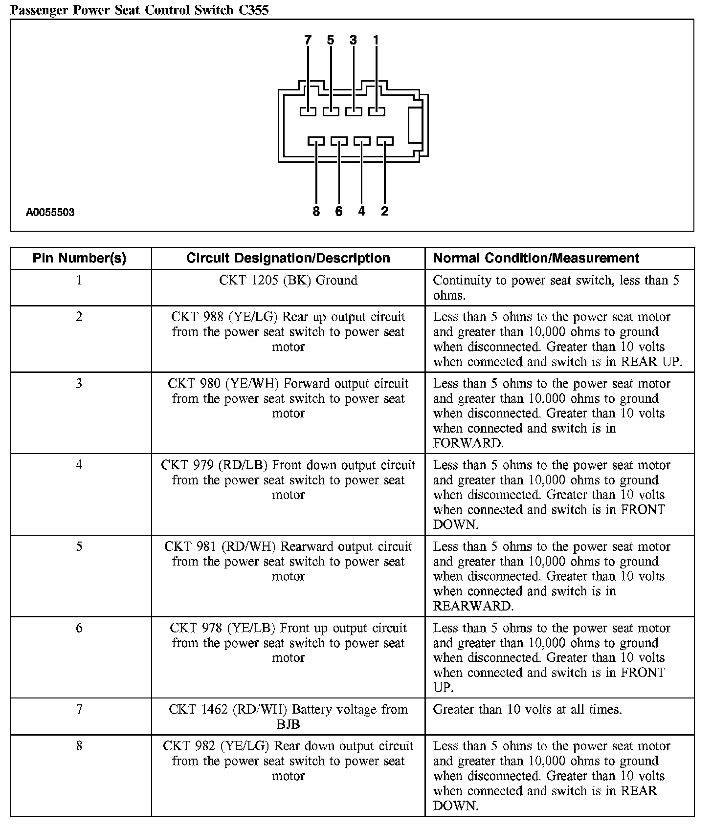 Passenger Power Seat Control Switch C355: