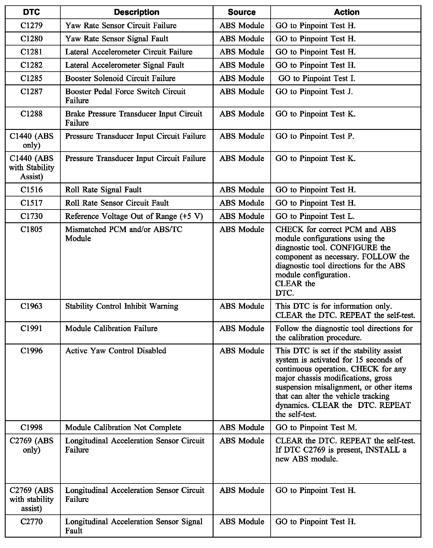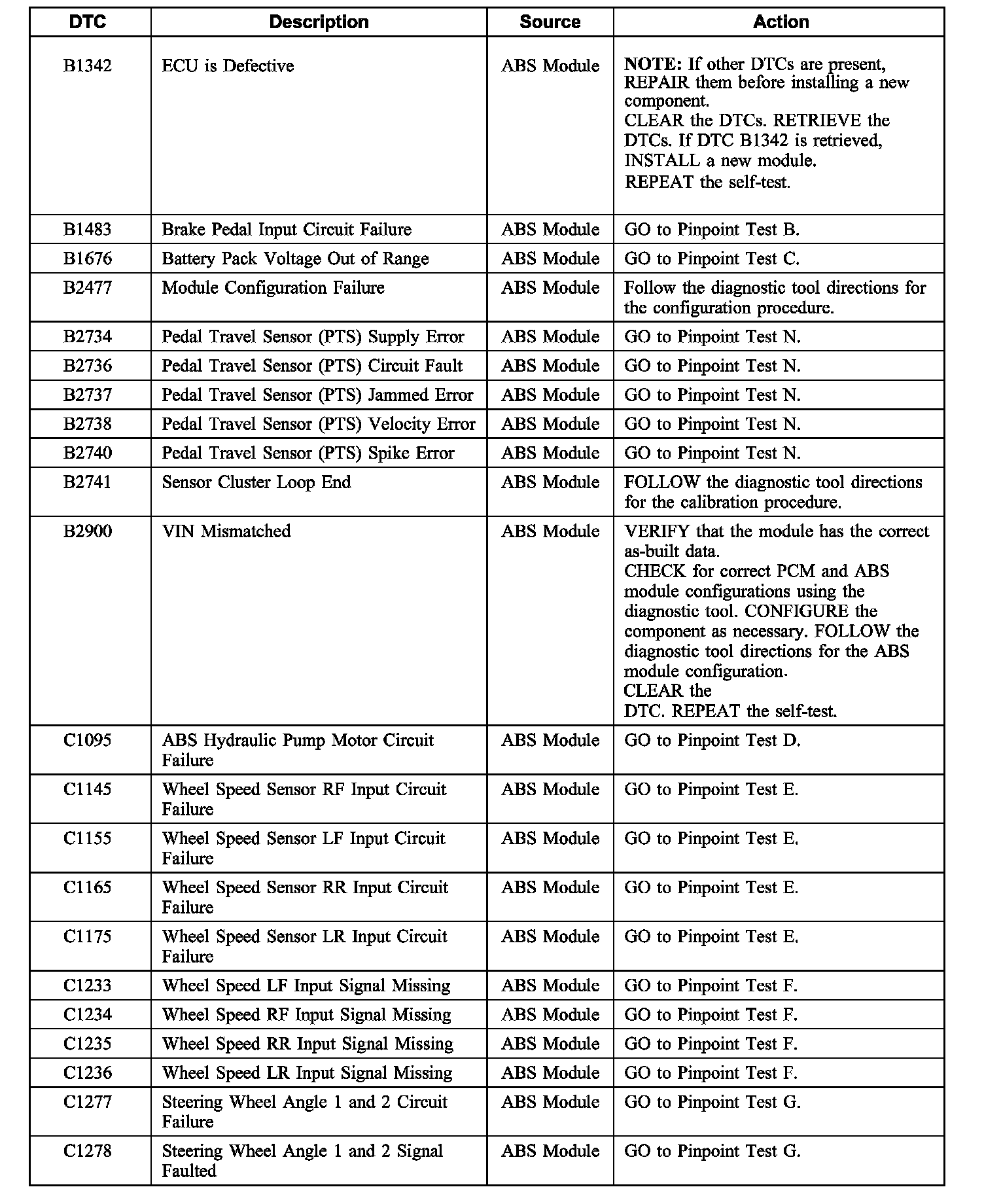 Anti-Lock Brake System (ABS) Module Diagnostic Trouble Code (DTC) Index