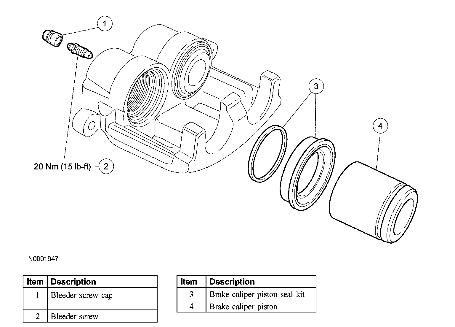 4. NOTE: Do not hone the brake caliper piston bores. If the brake caliper pistons or piston bores are excessively scored or corroded, install a new brake caliper.