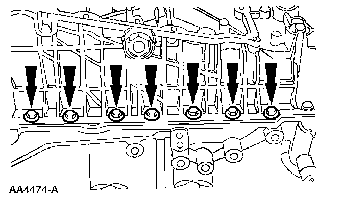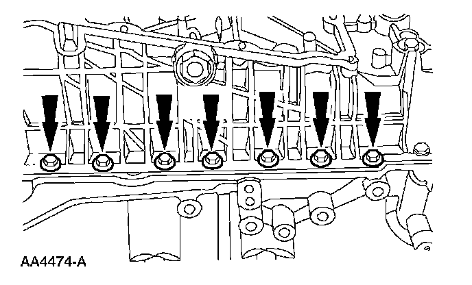 48. CAUTION: The cylinder block cradle inserts must be loosened completely or damage to the cylinder block cradle or oil leaks can result.