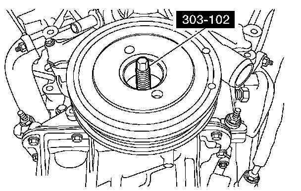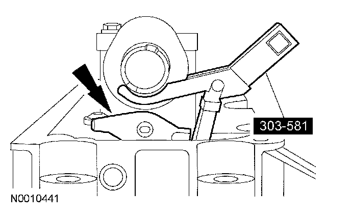 NOTE: The special tool must be installed on the damper and should contact the engine block. This positions the engine at top dead center (TDC).