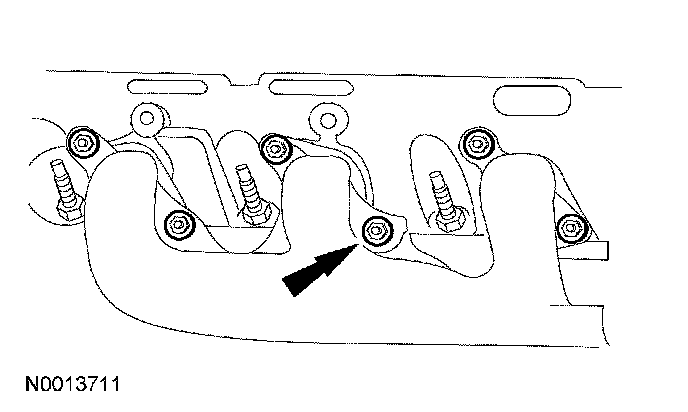 93. Install a new gasket and the RH exhaust manifold and nuts.