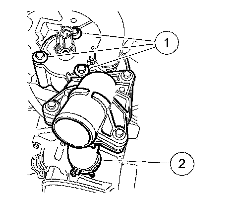 97. Position the thermostat housing and bypass hose on the coolant pump.