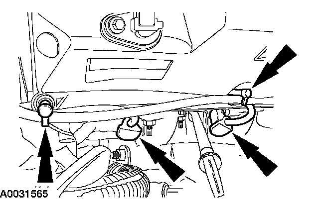 107. Position the engine wiring harness retainer and install the bolts.