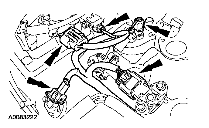 105. Position the vacuum harness on the engine and connect the fuel pressure and temperature sensor vacuum hose fittings.