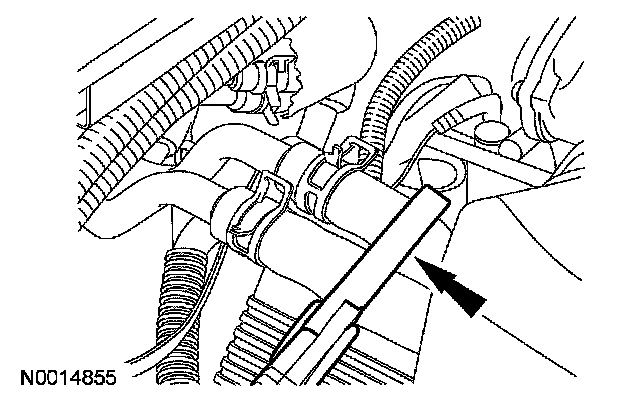 6. Clamp the heater core inlet and outlet hoses near the heater core connection.