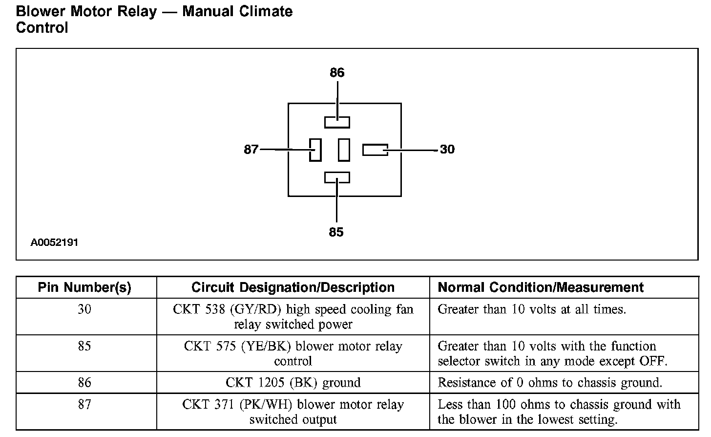 Blower Motor Relay - Manual Climate Control: