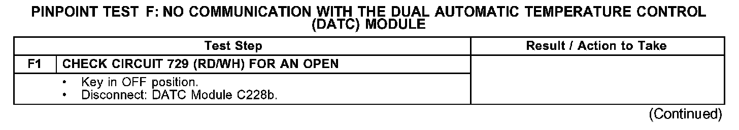 PINPOINT TEST F: NO COMMUNICATION WITH THE DUAL AUTOMATIC TEMPERATURE CONTROL (DATC) MODULEF1: