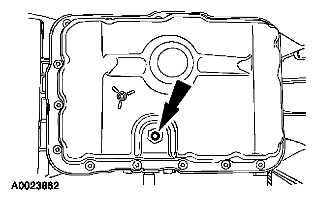 7. Hold the larger drain plug with a wrench and remove the small (center) fluid level indicating plug.