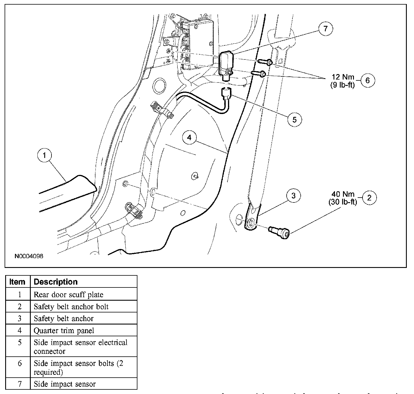 9. WARNING: The tightening torque of the air bag side impact sensor retaining bolts is critical for correct system operation.