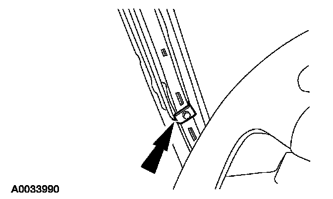 9. Position the A-pillar tether cord. Install the bolt. See the appropriate component removal and installation procedure or Specifications for the correct torque specification.
