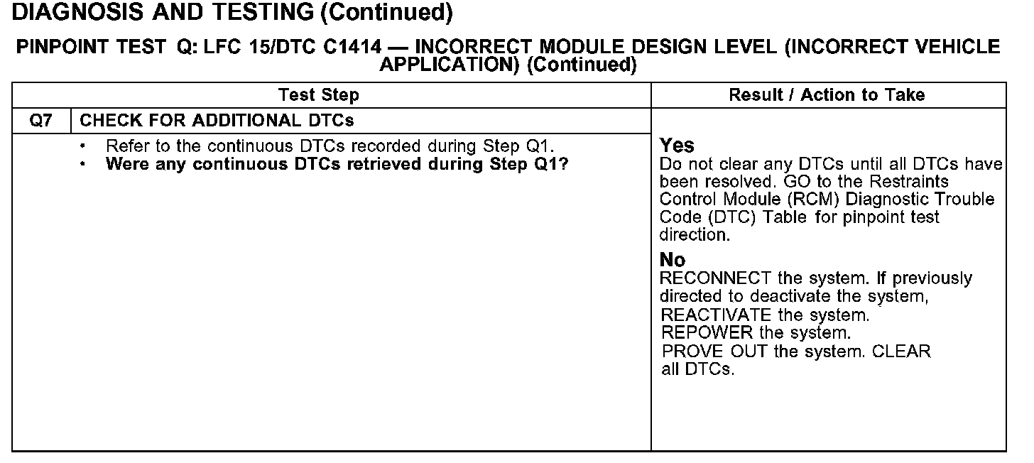 Test Q: LFC 15/DTC C1414 - Incorrect Module Design Level (Incorrect Vehicle Application)
