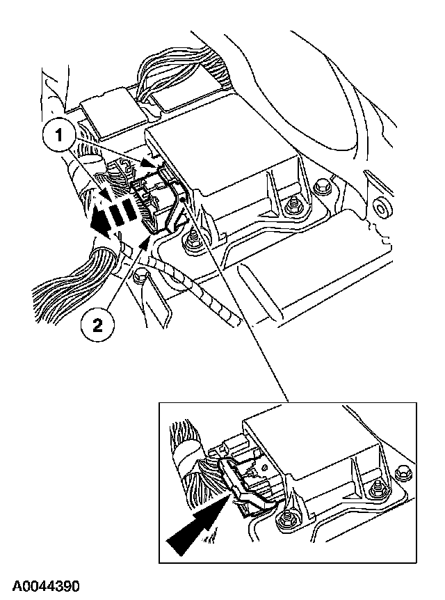 - Do not handle, move or change the original horizontal mounting position of the restraints control module (RCM) while the RCM is connected and the ignition switch is ON. Failure to follow these instructions may result in the inadvertent deployment of the safety canopy and risk of personal injury.