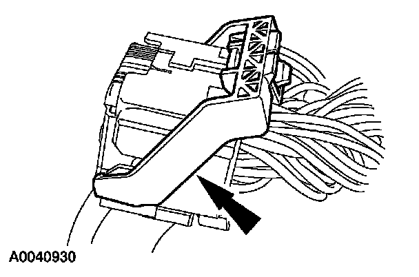 2 Using the connector position assurance lever, pivot it toward the RCM, drawing the connector into the RCM. Make sure the thumb tab is engaged to the retainer on the RCM and locked in place.