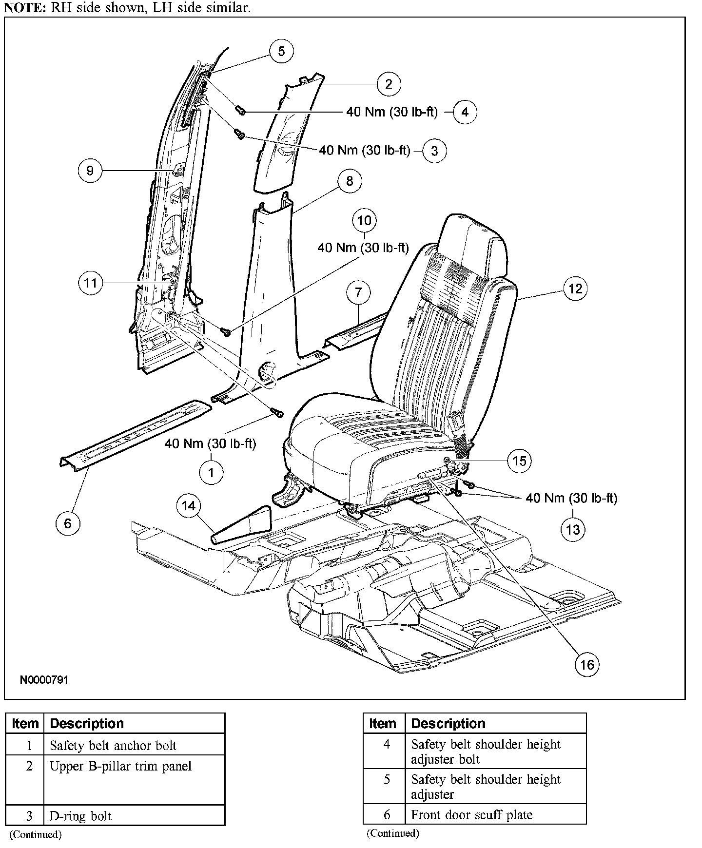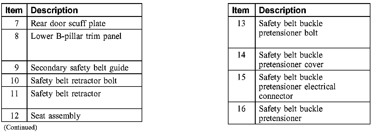 Safety Belt System - Exploded View, Front