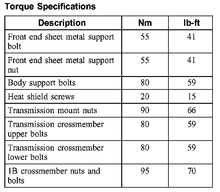 Torque Specifications: