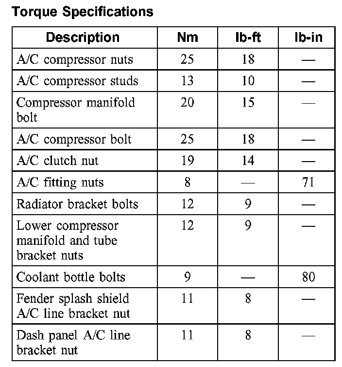 Torque Specifications: