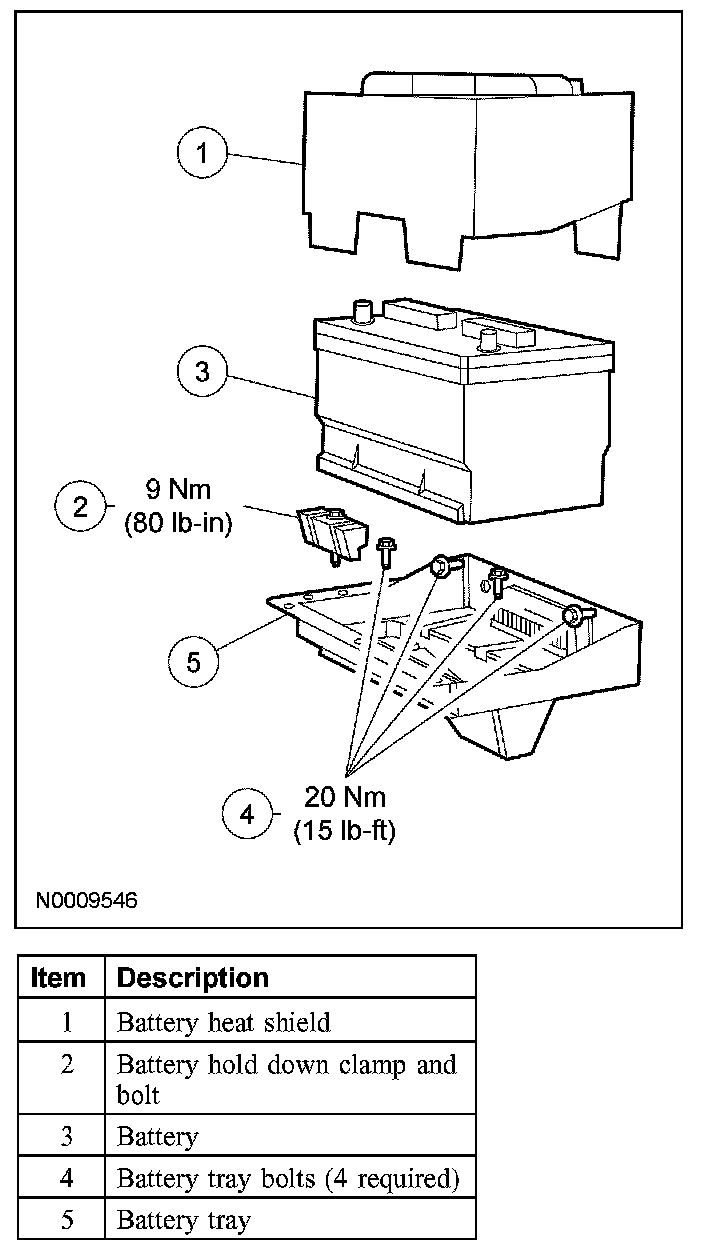 2. Remove the 4 battery tray bolts.