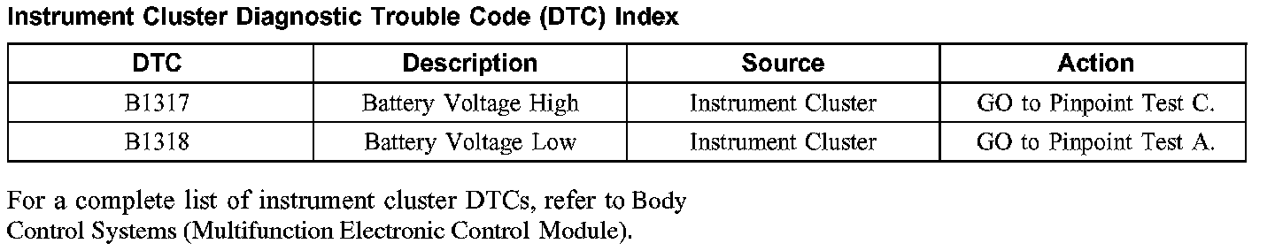 Instrument Cluster Diagnostic Trouble Code (DTC) Index
