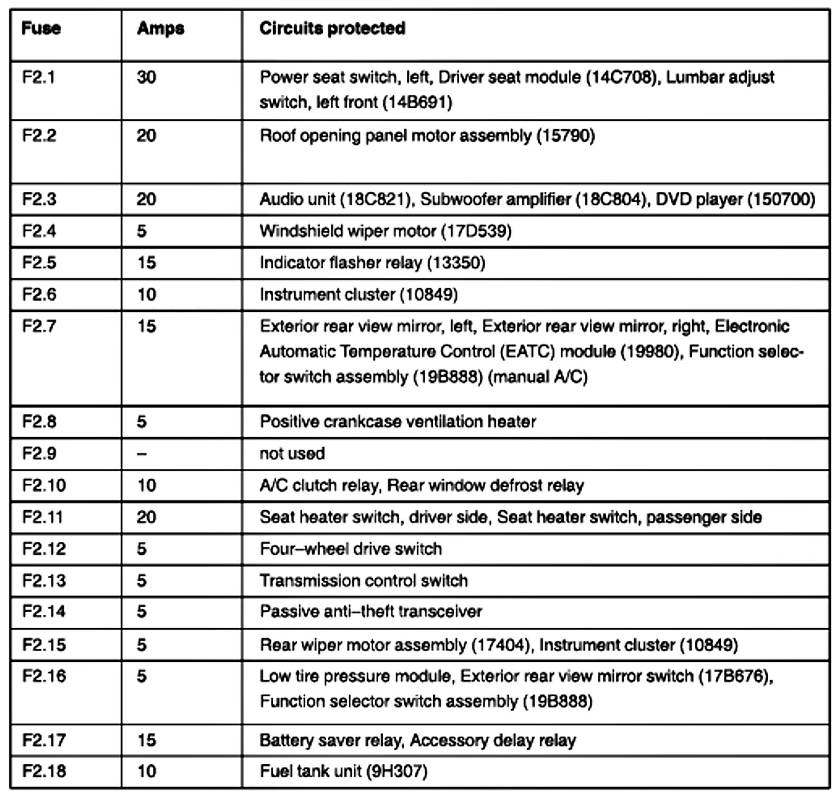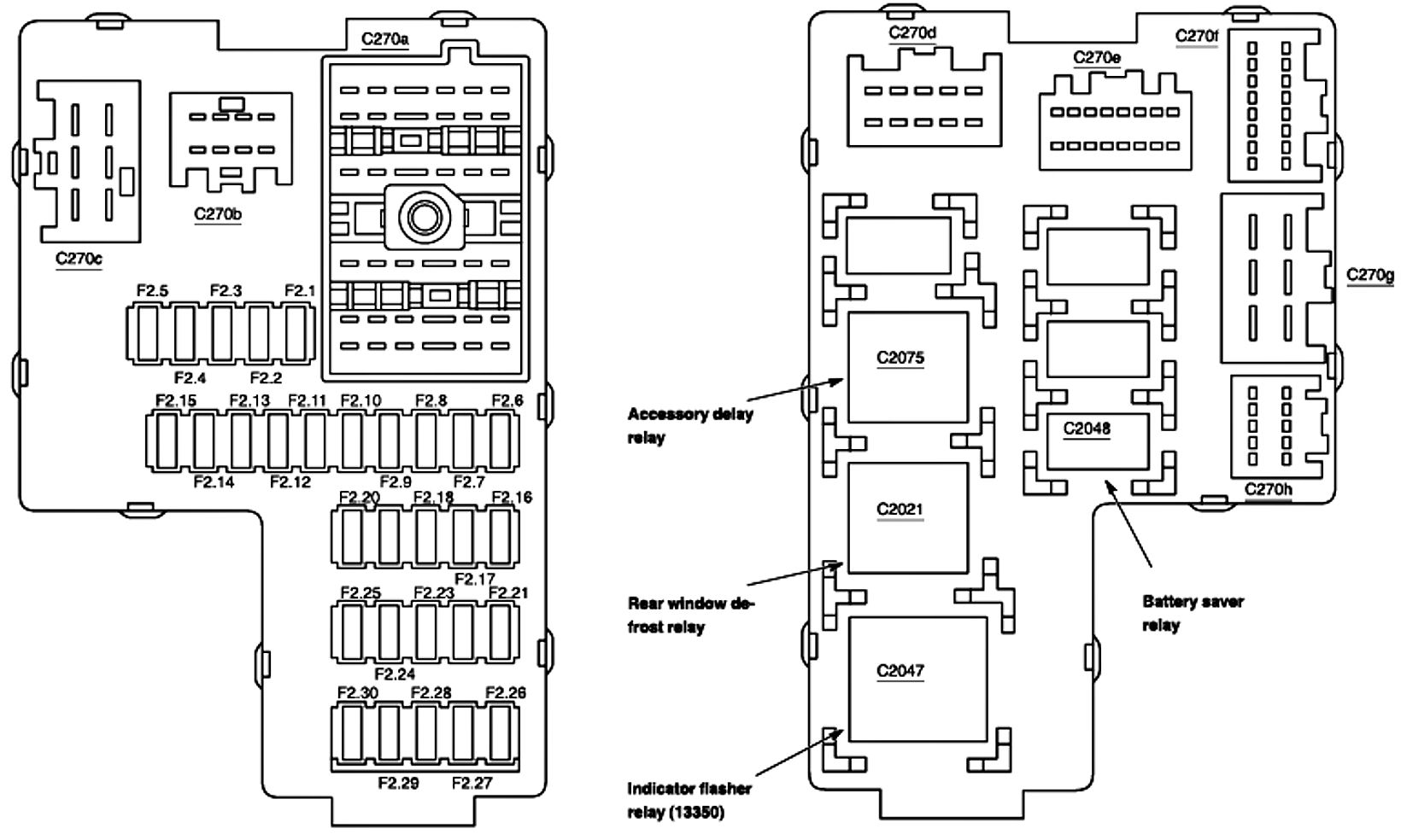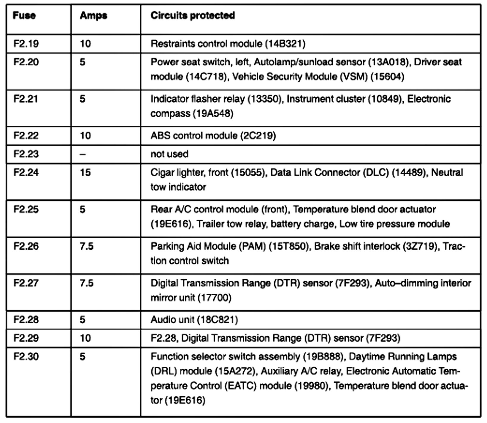 ALLDATA Editor's Note: Ford identifies this one component by 2 different names. Users have reported success comparing these images to determine Application/ID or Location of Fuses and Relays with the Central Junction Box/Passenger Compartment Fuse Panel.