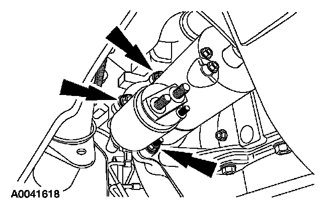 9. Install the starter motor electrical connectors.