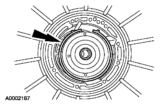 2 Make sure the opening of the center support retaining ring is positioned correctly.