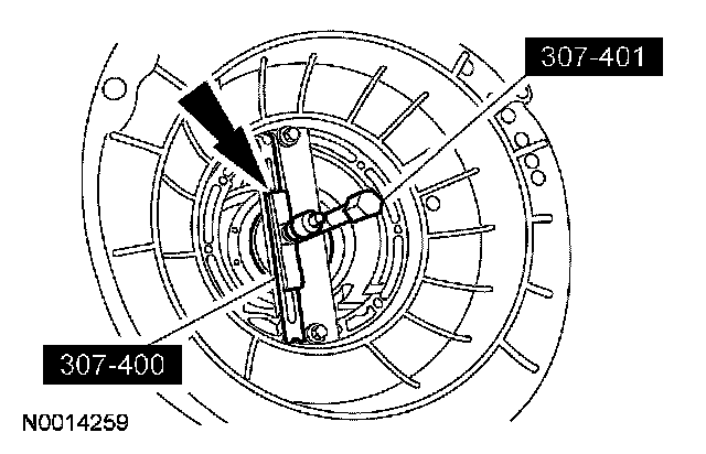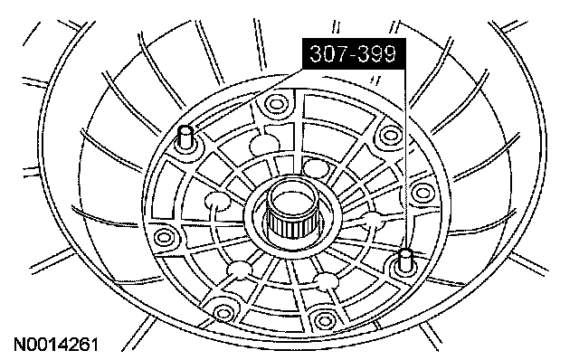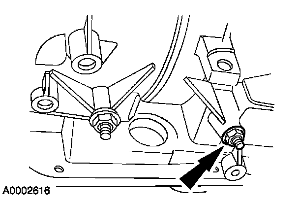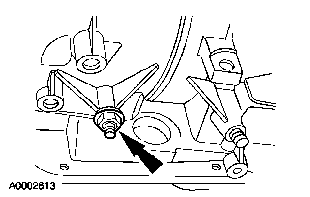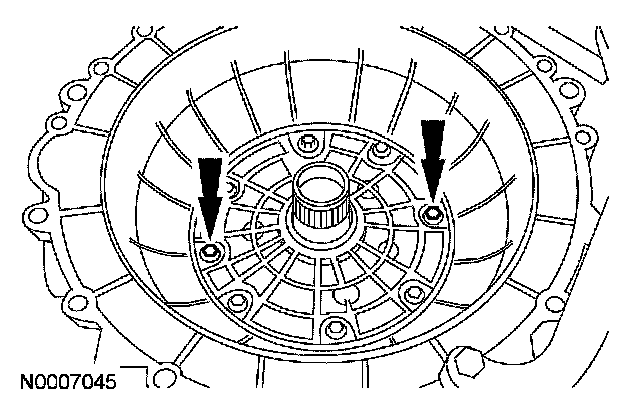 1 Install the special tool and the bolts using the 2 pump screw locations at approximately 6 and 12 o'clock positions.