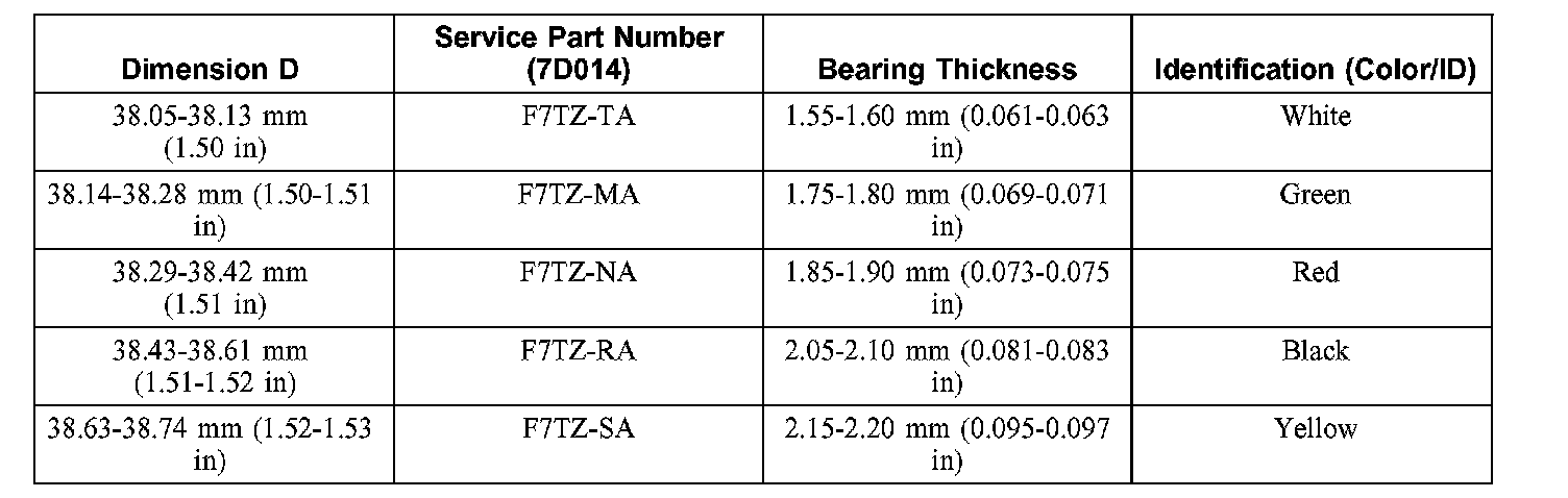 75. Select the No. 1 thrust bearing from the above chart using dimension D.