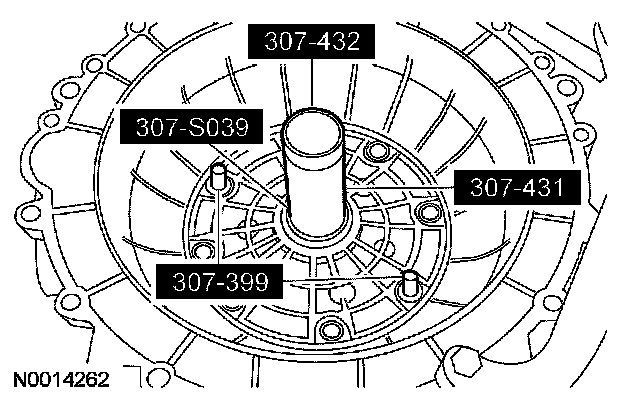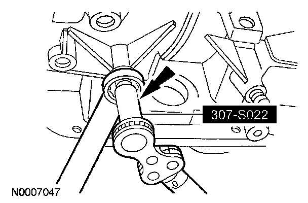 97. CAUTION: Inspect the transmission case bore to make sure it is free of foreign material and not damaged. If damaged, transmission leak may occur.