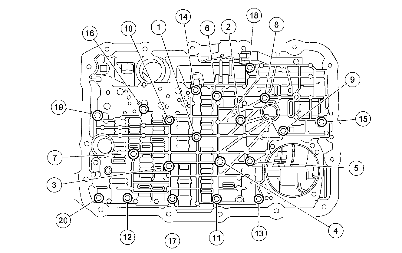 Install the solenoid body. Tighten bolts in the sequence shown.