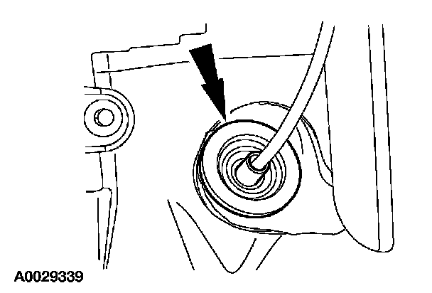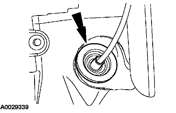 2. Position the shift cable through the opening in the bulkhead. Do not seat the rubber grommet in the bulkhead at this time.
