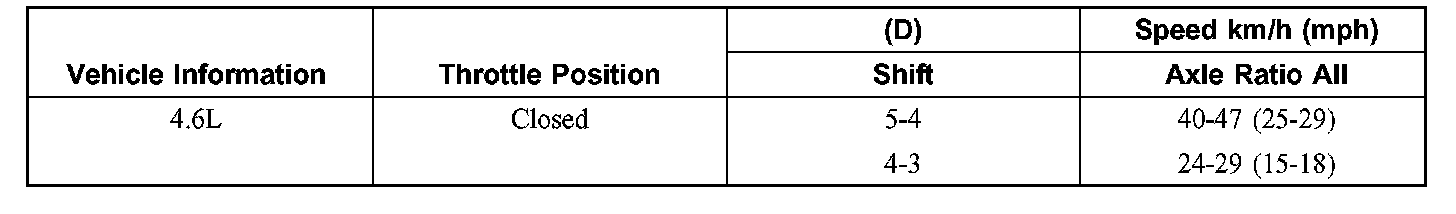 Shift Speeds Chart