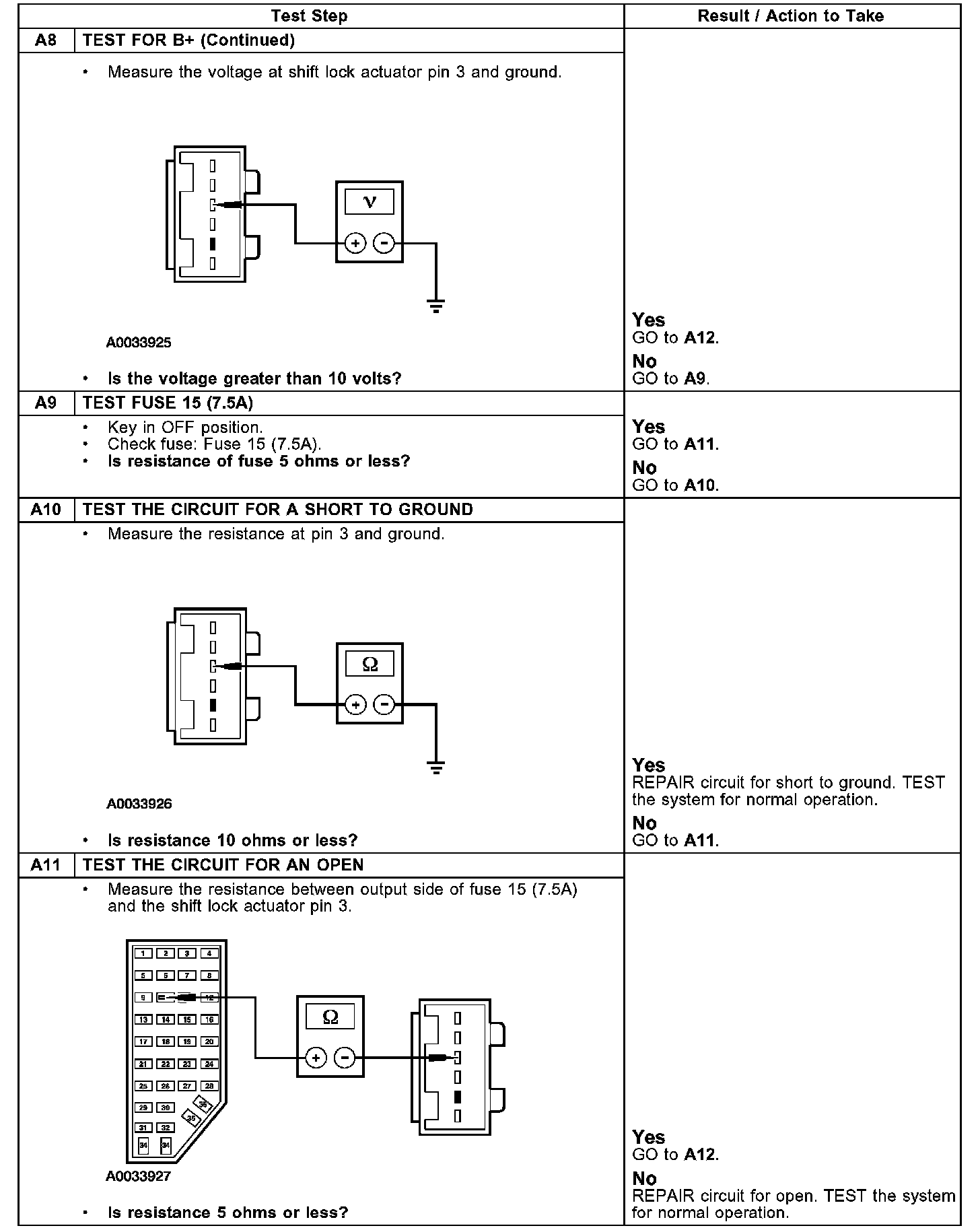 PINPOINT TEST A: SHIFT INTERLOCK SYSTEM DOES NOT RELEASE/LOCK CORRECTLY