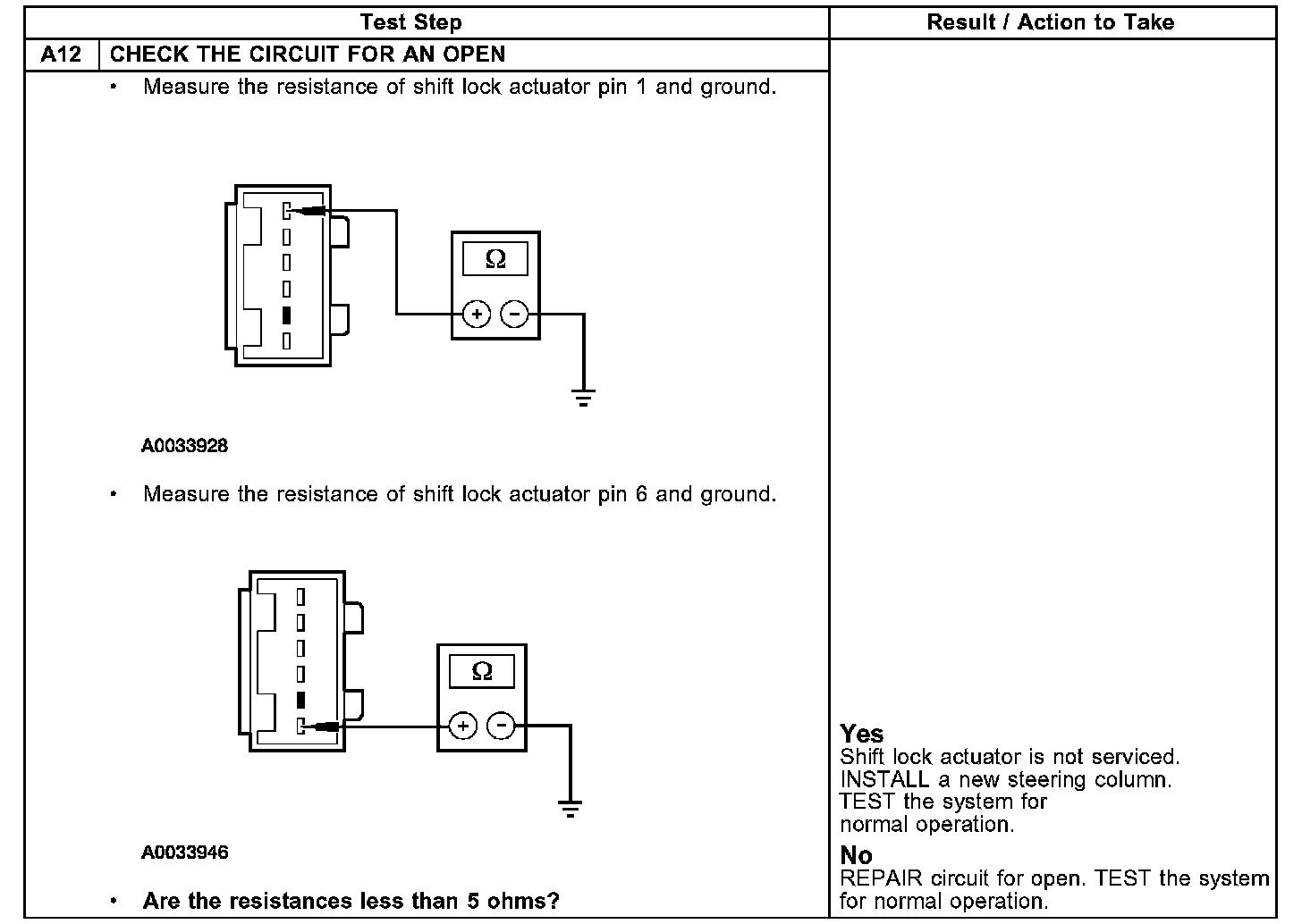 Test A: Shift Interlock System Does Not Release/Lock Correctly