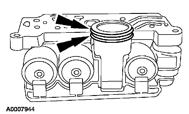 7. Install new O-ring seals on the solenoid body connector. Lubricate the O-ring seals with clean automatic transmission fluid.