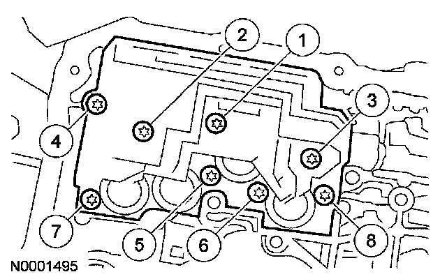 Install the solenoid body. Tighten the bolts in the sequence shown.