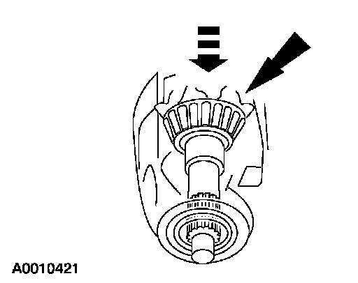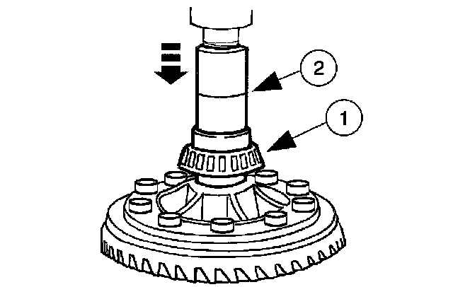 34. NOTE: Push the differential assembly downward to fully seat the differential bearing cups in the differential housing.