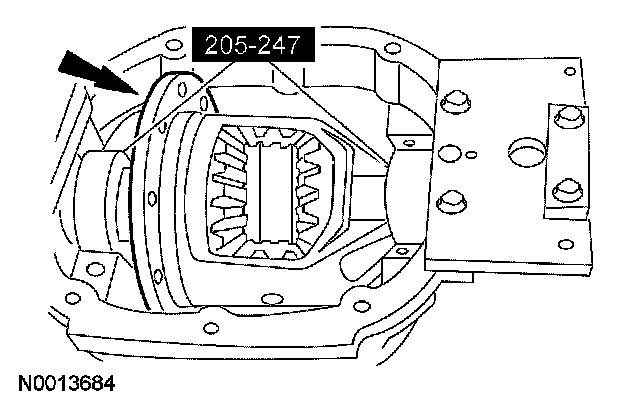 16. CAUTION: Do not loosen the pinion nut to reduce pinion bearing preload. Install a new collapsible spacer and pinion nut if pinion bearing preload reduction is necessary.