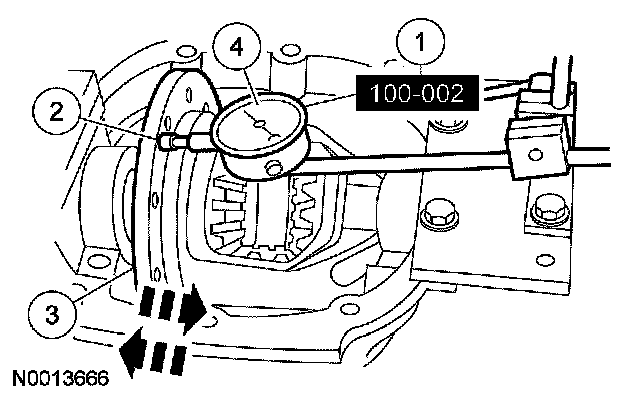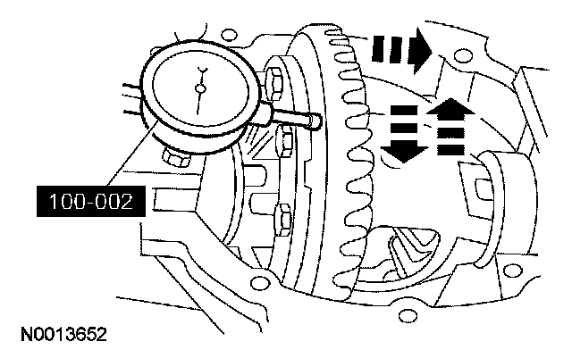 4 Turn the differential ring gear without turning the pinion gear. Record the measurement.