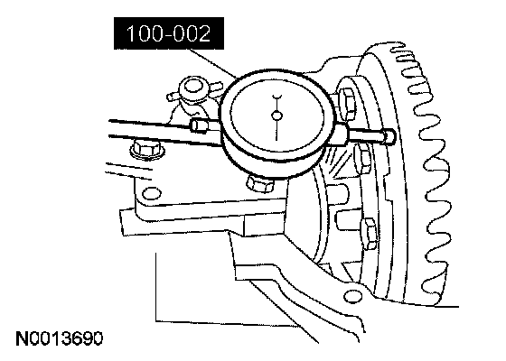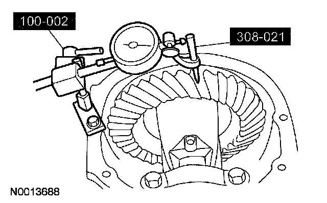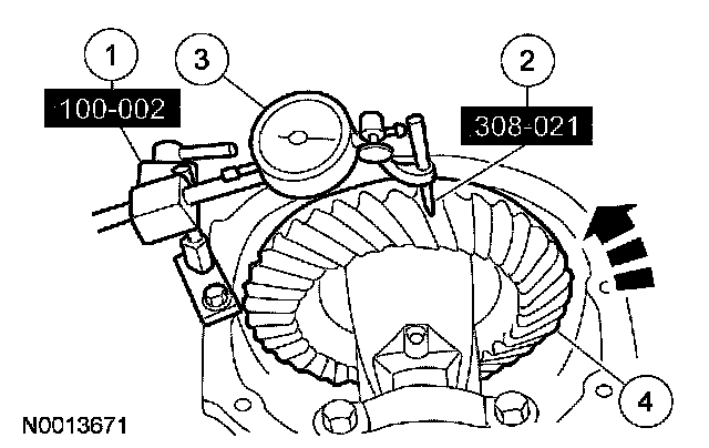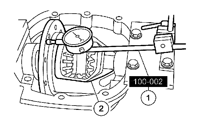^ The backlash tolerance is 0.13 mm (0.005 inch) to 0.20 mm (0.008 inch) and cannot vary more than 0.05 mm (0.002 inch) between points checked. A backlash variation of more than 0.005 mm (0.002 inch) indicates gear/case runout.