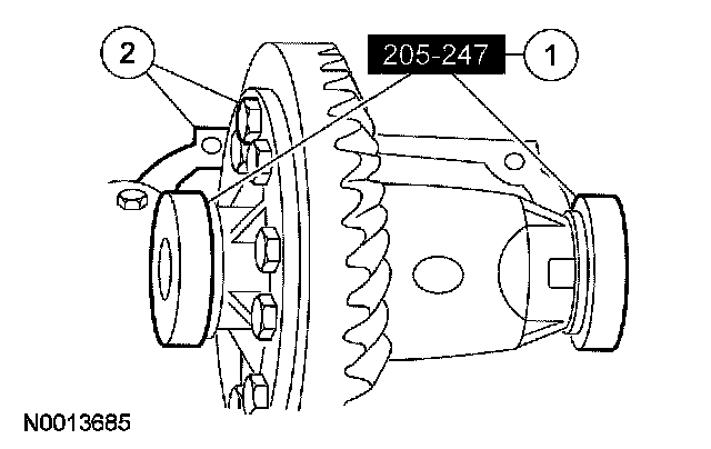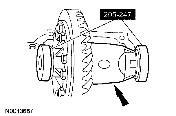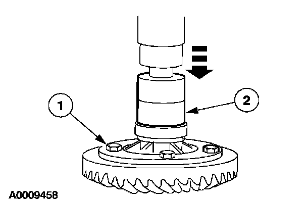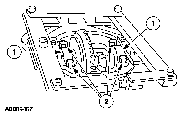 1 Position the differential ring gear and the differential assembly. Start 2 or 3 new differential ring gear bolts to align the holes in the differential ring gear and the differential assembly.