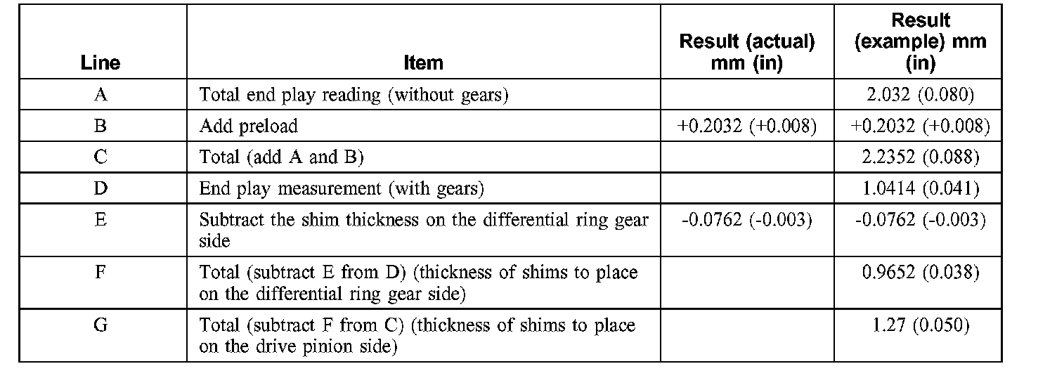 4 Record the total end play reading on the Differential Bearing Shim Selection Procedure Worksheet, Line A.