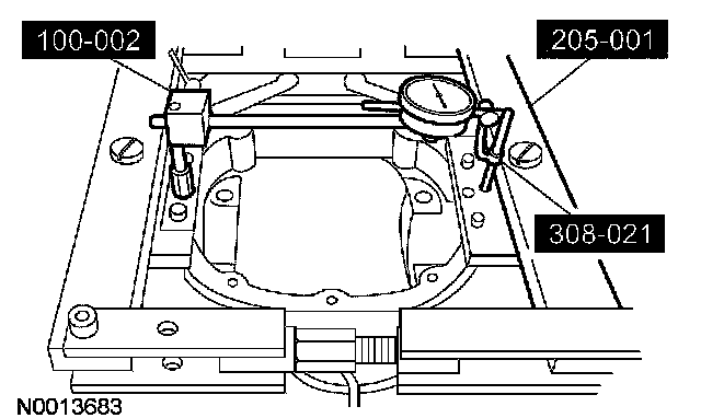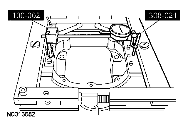 2 Force the differential assembly as far as possible away from the indicator. Position the indicator tip on the machined surface and adjust it to measure full travel. With force still applied, set the indicator to zero.