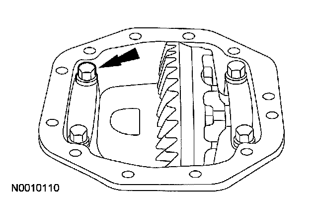 ^ If the backlash is not within specification, correct by increasing the thickness of one differential bearing shim and decreasing the thickness of the other differential bearing shim by the same amount.