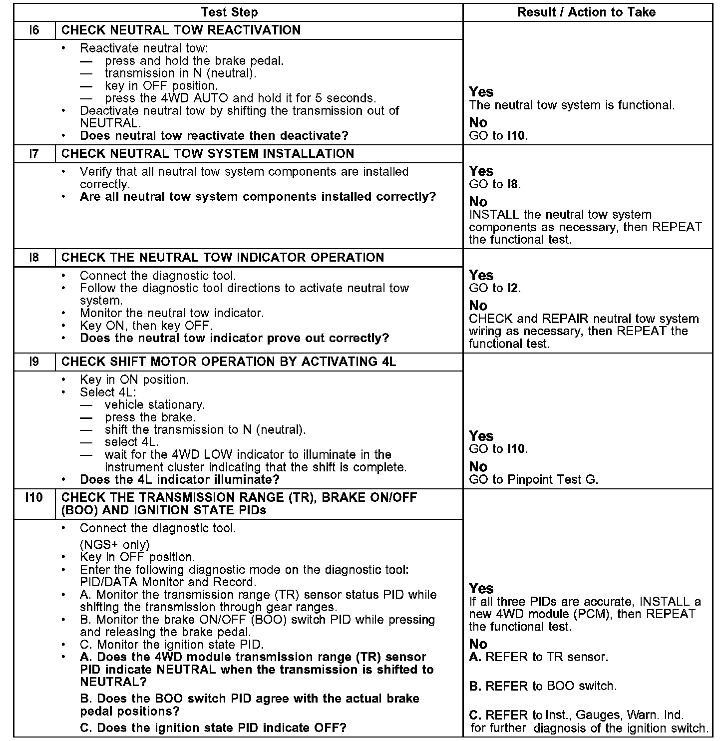 Pinpoint Test I: Neutral Tow Functional TestTest I1-I5: