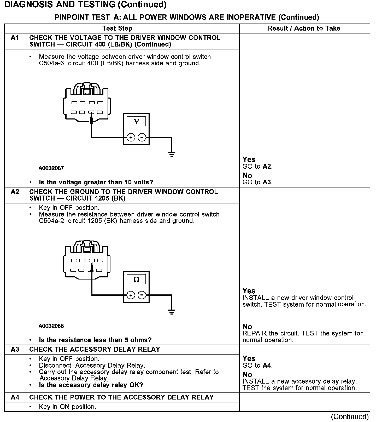 PINPOINT TEST A: ALL POWER WINDOWS ARE INOPERATIVEA1: