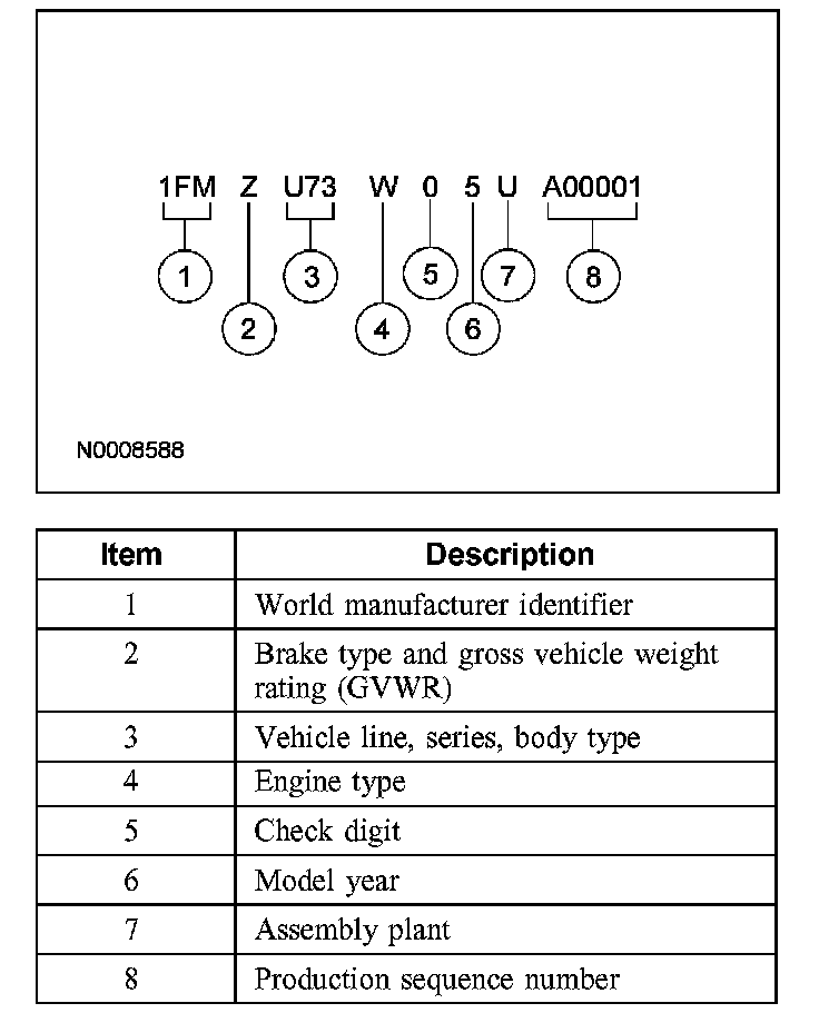 VIN positions 5 through 7 indicate the vehicle line, series and body type.