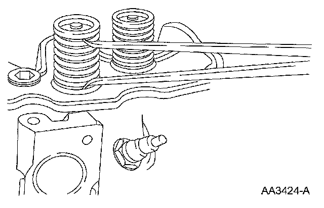 ^ Turn the valve spring and observe the space between the top of the valve spring and the square. Install a new valve spring if out of square.